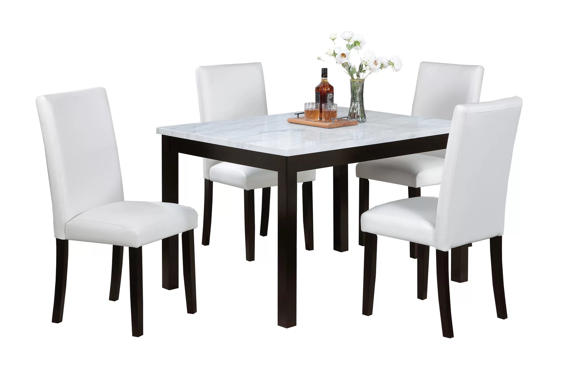 White/Espresso; Material: Faux marble / MDF / Rubber Wood / Faux leather / Foam / Particle board