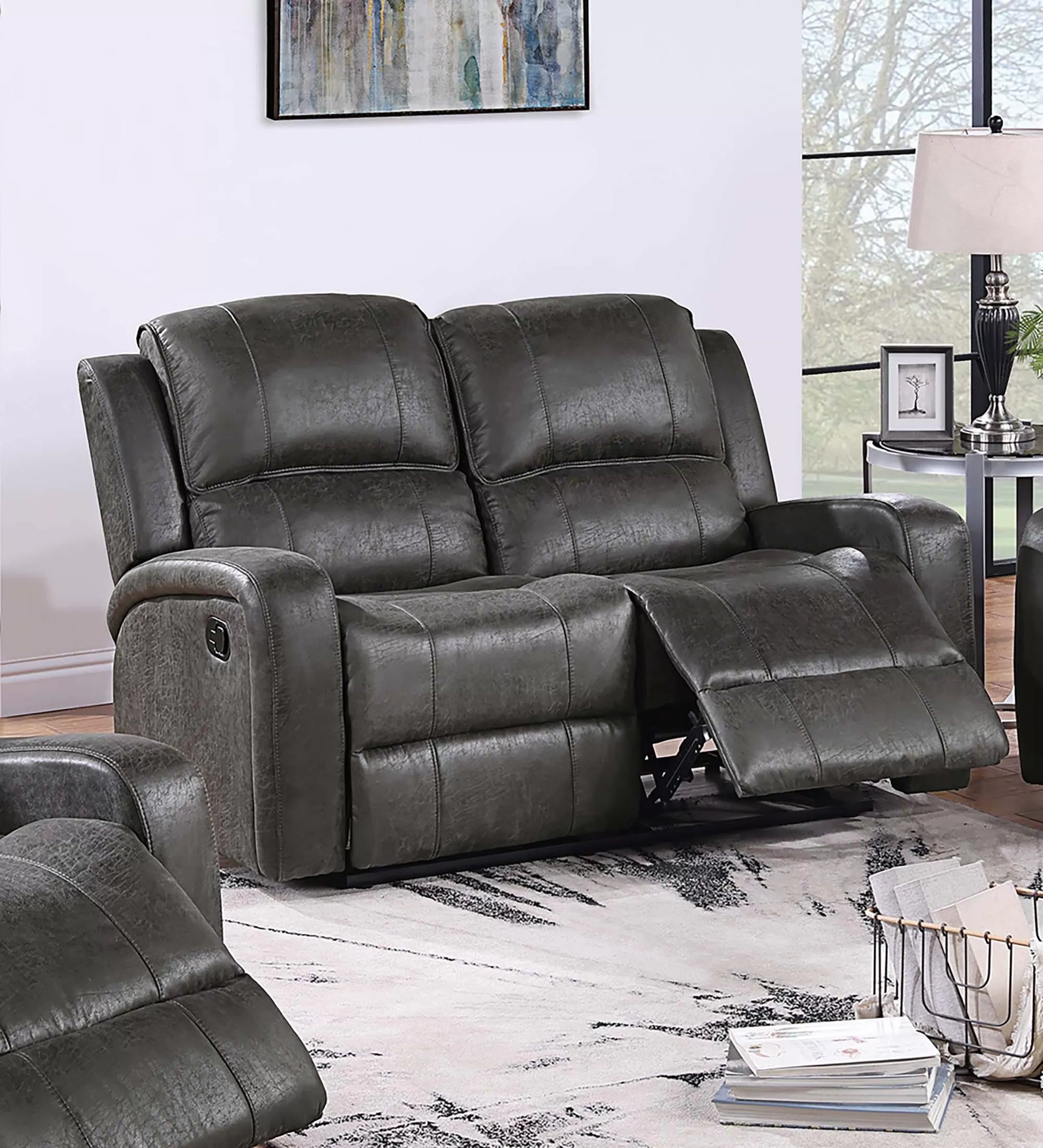 Recliner Loveseat, Smoke-Chestnut, Leather-Like Fabric